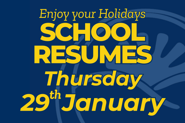 A friendly reminder that when school recommences on Thursday, 29th January that hats will be required. Stay Sun Smart over the holidays!